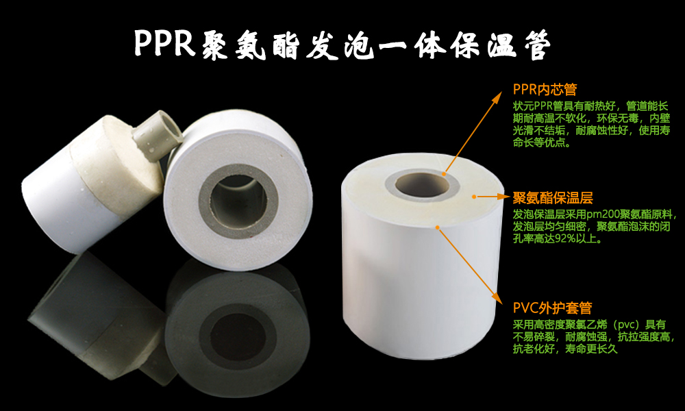 新型PPR保溫管采用聯塑PPR熱水內芯管+聚氨酯發泡保溫層+PVC(PE)外套保護層,三層緊密閉合,中間無縫隙、無空氣層,保溫效果極優。